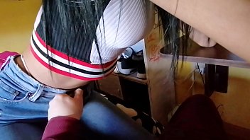 Cena de sexo quente com padrasto e enteada transando e cavalgando punheta até o esperma sair (estudante sexy))